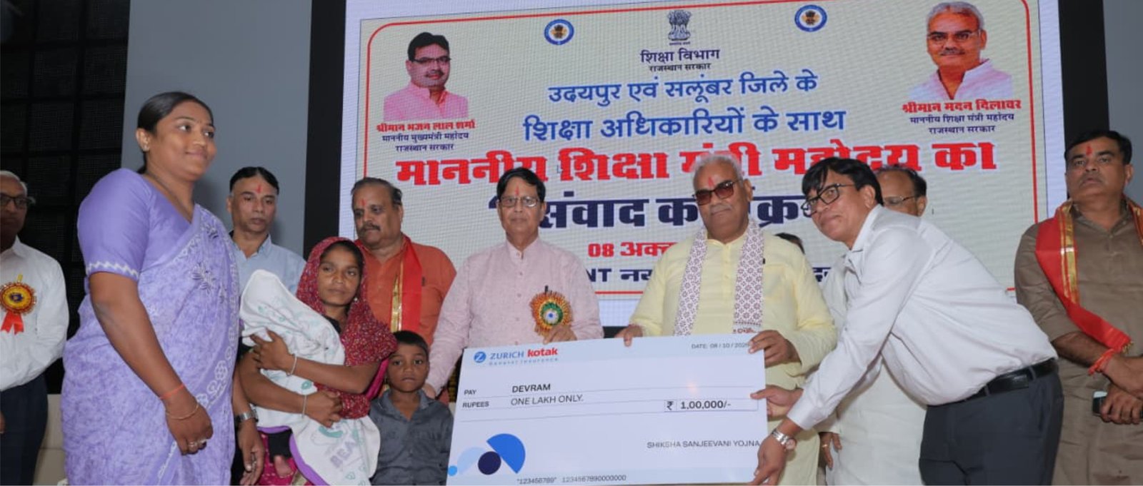 Hon’ble Education Minister of Rajasthan, Shri Madan Dilawar, presenting a cheque of ₹1 lakh to a student as part of the “Shiksha Sanjeevani Insurance Scheme,” ensuring continued education support through accidental insurance coverage. Shri Satish ji Gupta, OSD to Hon’ble Education Minister and Mr. Khemchand Khinchi, Torque Insurance Brokers on 8th October 2025 at Basti, Udaipur. […]