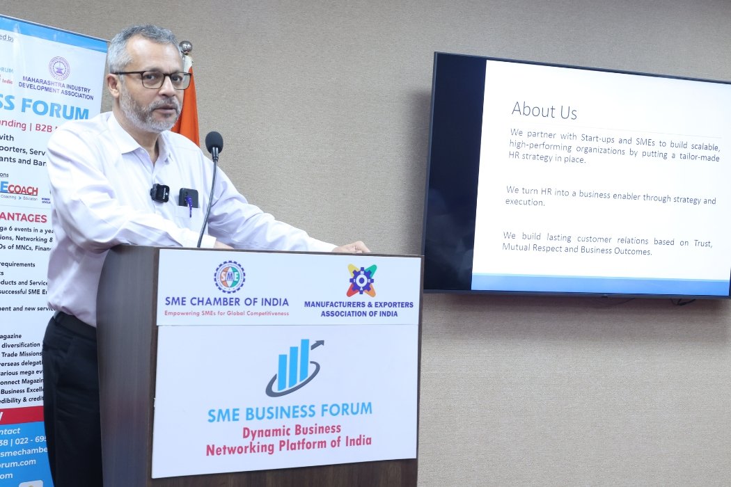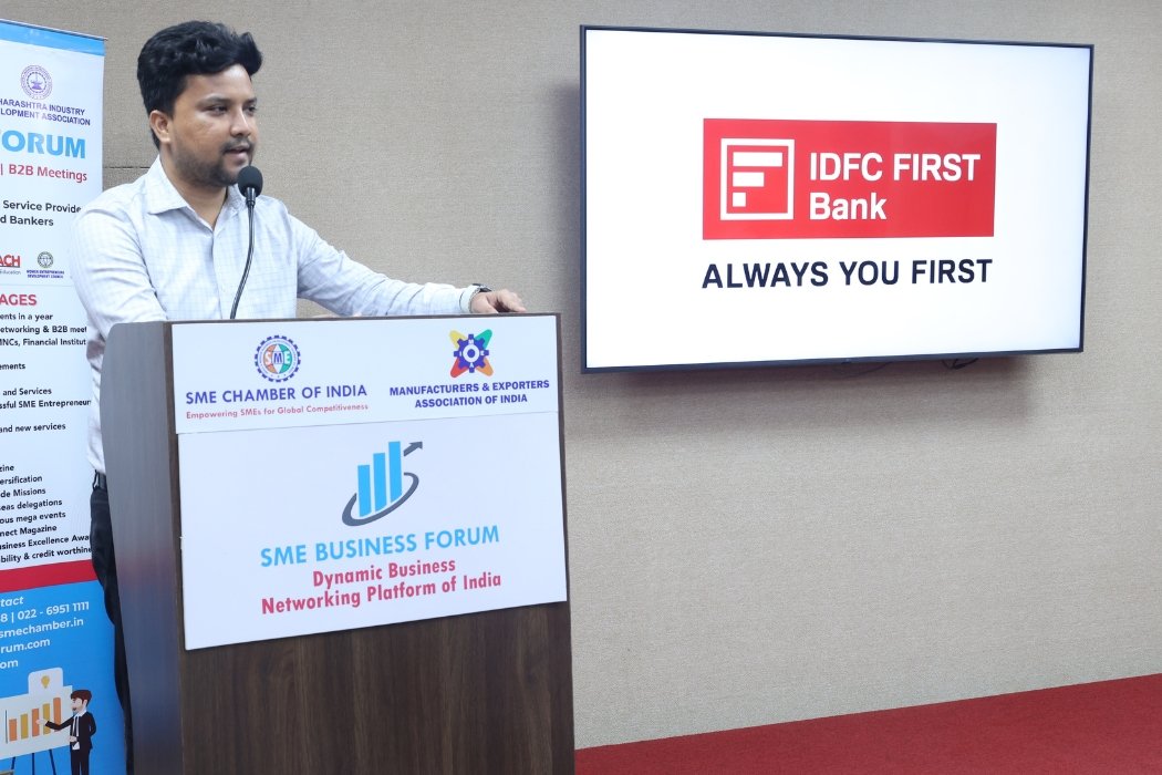 Mr. Sanjeev Sonar – Relationship manager working capital – IDFC Bank addressing the delegates on Working capital solutions for SMEs
